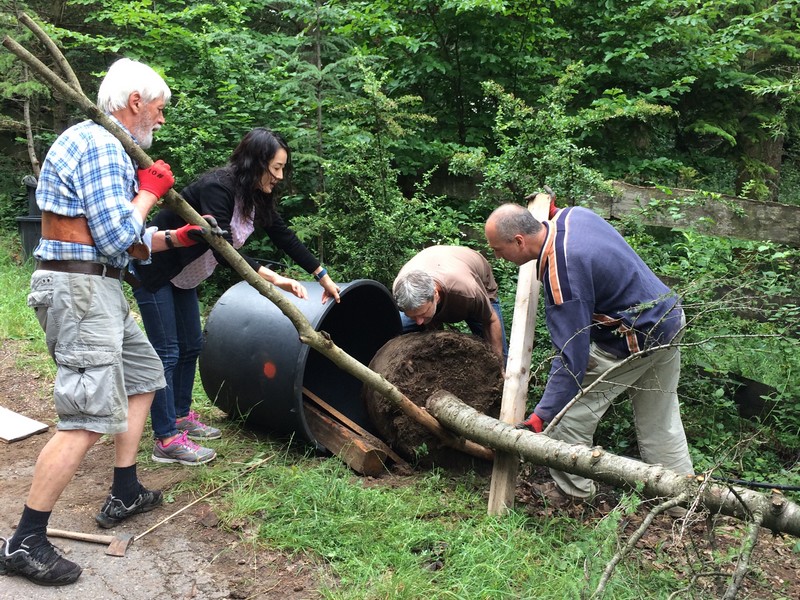 Ez év tavaszán minden megmaradt fát átültettünk egy jóval nagyobb konténerbe, darus emeléssel és visszaeresztéses egyszerű módszerrel. Hanem amikor a darus kocsi sebtiben elment, derült ki, hogy egy fa lemaradt az átültetésből. Ekkor jöttek hát a fent említett ősi módszerek. Íme néhány kép az többszáz kilós konténer daru nélküli átültetésére. Munkatársak: Debreczy Zsolt, Bede-Fazekas Róbert, Shin Soojeong.